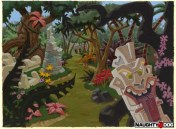 Joe did the same for the backgrounds, but as landscapes have more lines, on a slightly longer time scale. Given that “Willie” was Tasmanian we set him on a mysterious island where every possible kind of environment lurked. Evil geniuses like Dr. Cortex require island strongholds. So we had lots of environments to design. Jungles, power stations, creepy castles, evil natives, sunset temples, spooky caves, etc. At some point early on we hit on the “tiki” idea and thus: goofy Easter Island tikis everywhere.