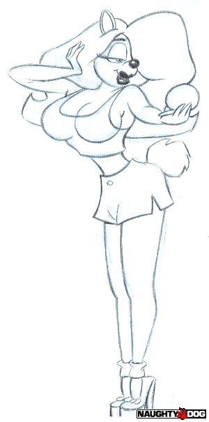 Andy: Well , Naughty consists of mainly Jason Rubin and myself . Naughty got its names from a cartoon character that Jason drew. (Andy showed me a picture of an old Naughty Dog logo). Their new logo is on their flyers. The character was created about 8 years ago.